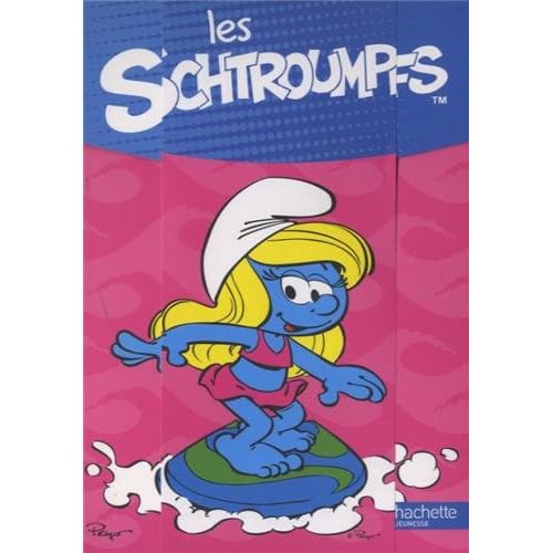 Une valisette en carton aux couleurs de la Schtroumpfette contenant un livre d'activités avec des stickers, un bloc de coloriages, un poster et 4 cartes postales à envoyer à ses meilleures amies.