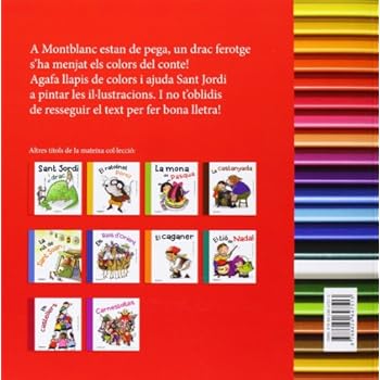 A Montblanc estan de pega, un drac ferotge i famolenc amenaça la comarca. Els vilatans li lliuren animals i aviram, però el drac s'ho acaba tot i li han de lliurar noies. Fins i tot S'HA MENJAT ELS COLORS DEL LLIBRE! El dia que li toca a la filla del rei, en passarà una de grossa: una cosa llegendària! AJUDA SANT JORDI A RECUPERAR ELS COLORS DEL CONTE I TAMBÉ LES PARAULES.